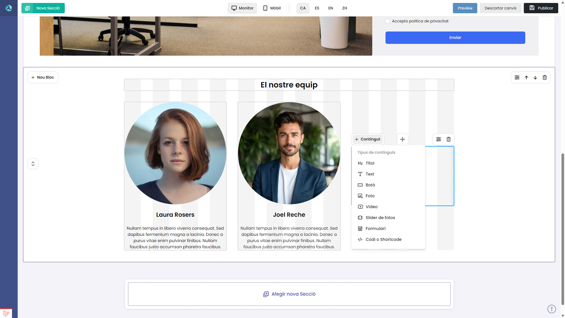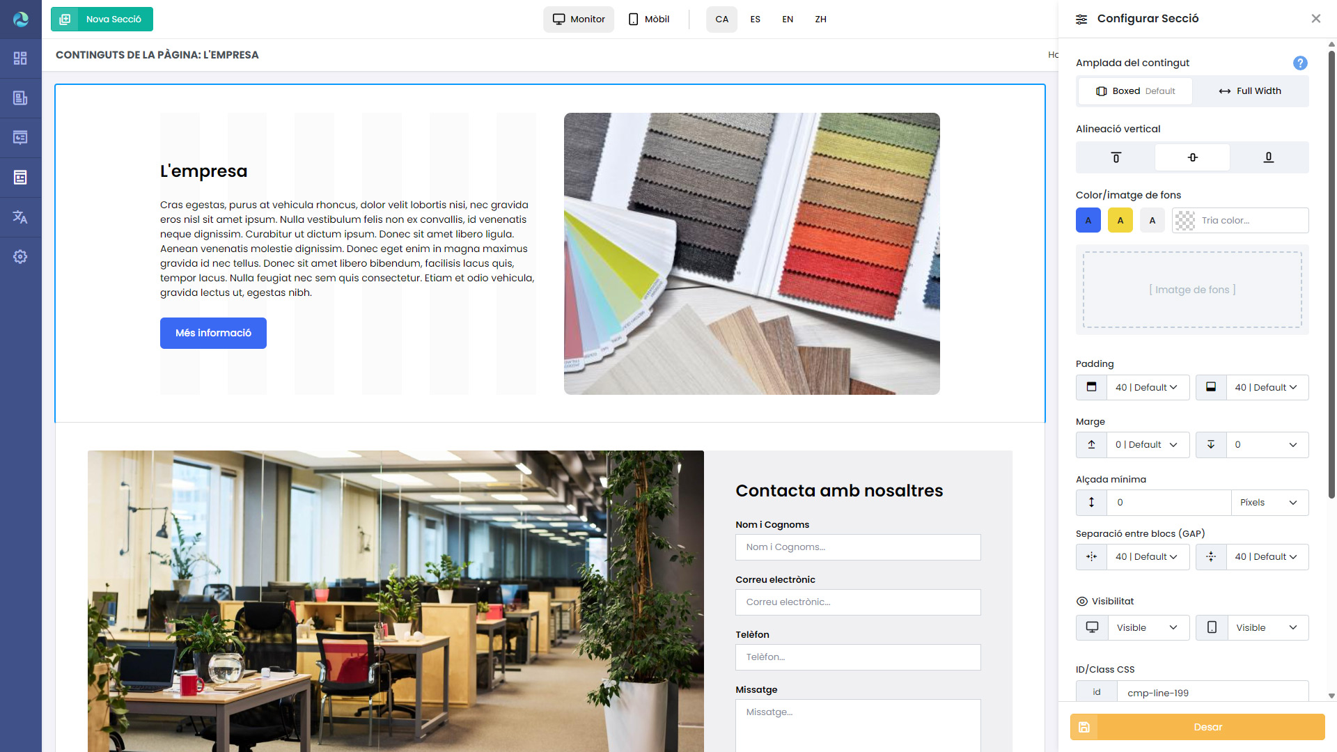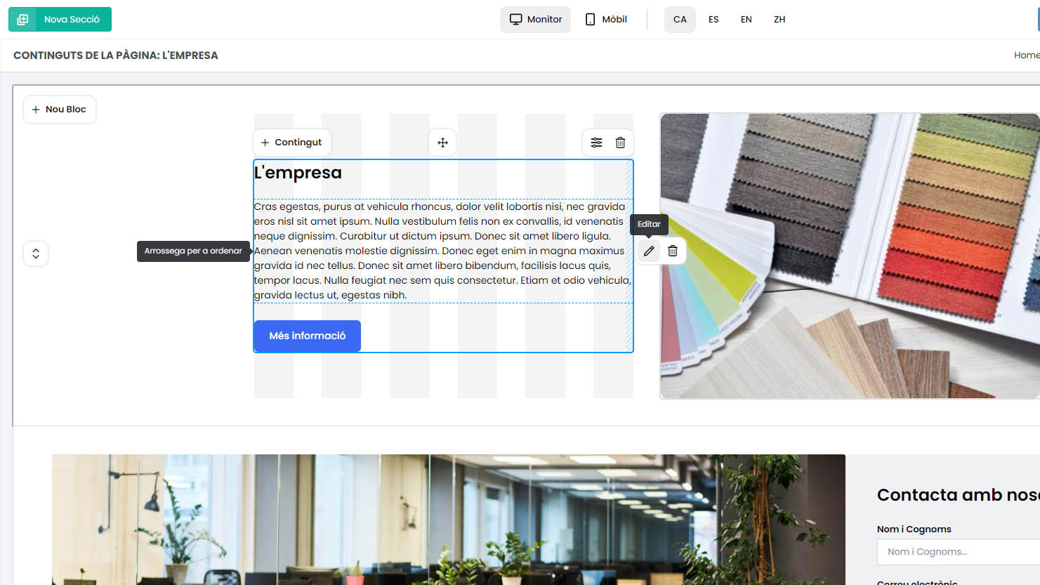 Crea les seccions que necessitis, edita el seu contingut i afegeix-les al men煤. Tot aix貌 en nom茅s 2 minuts i sense escriure cap l铆nia de codi.